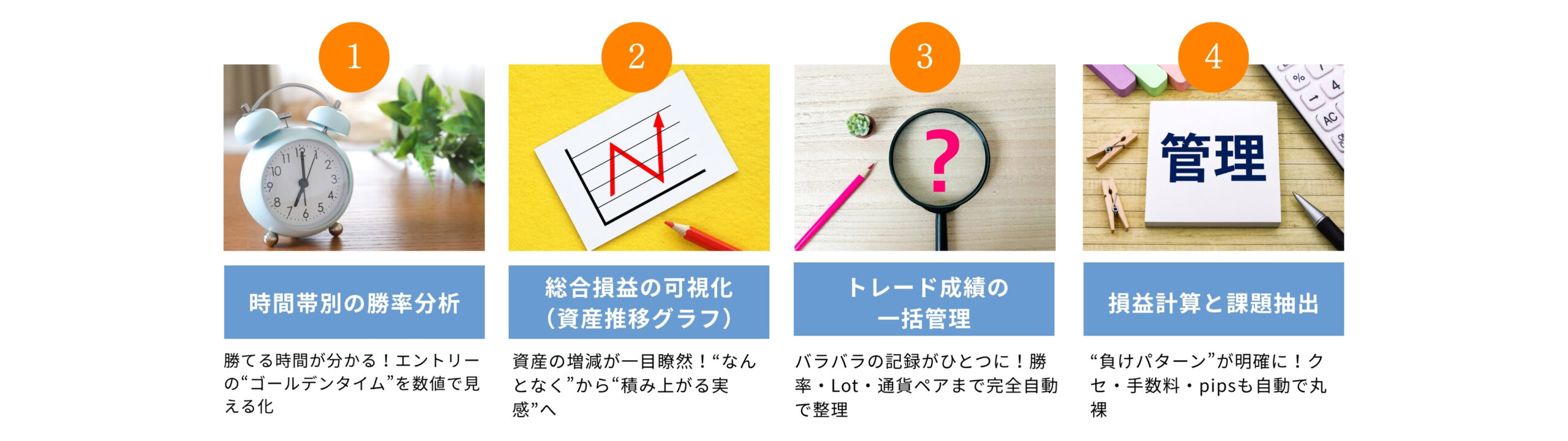 - 自分のトレードの癖や傾向を客観的に見直せる