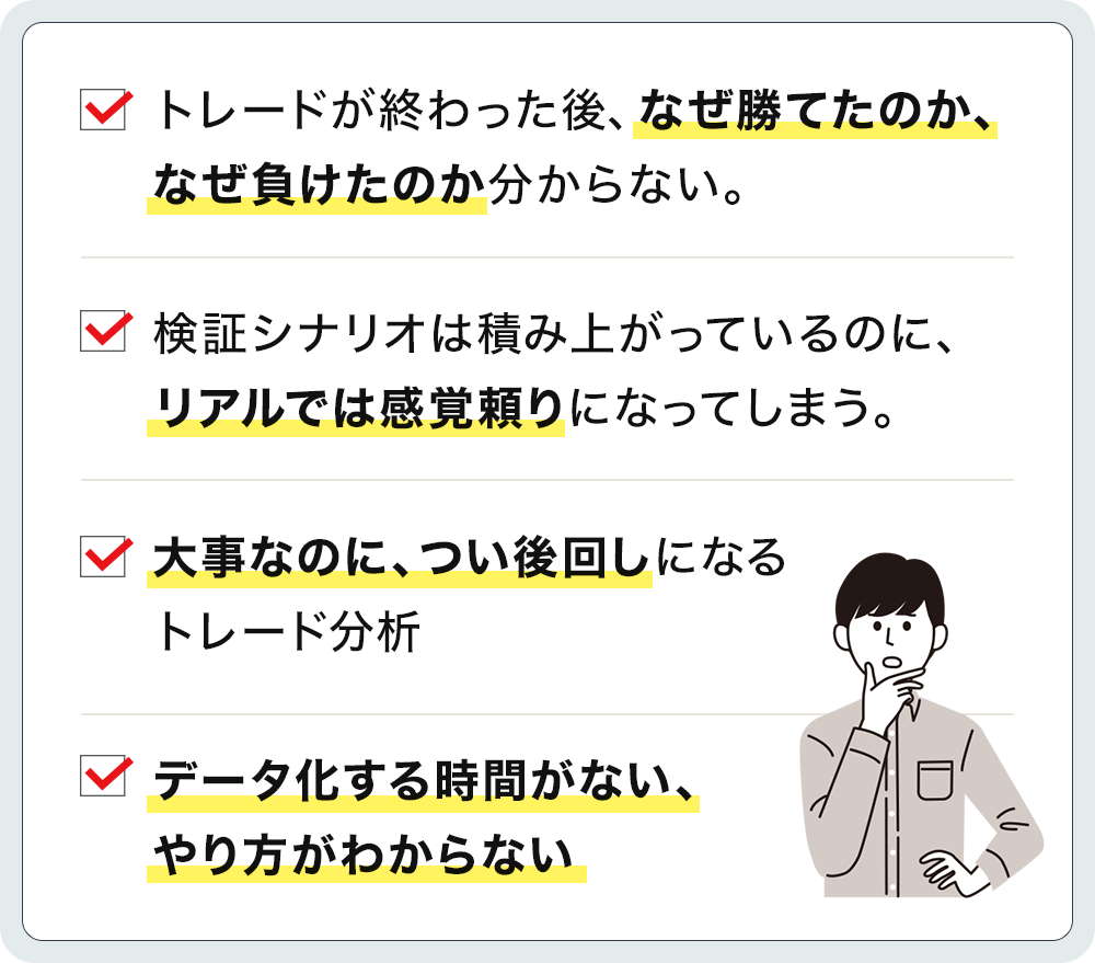 自分のトレード結果を「勘」で振り返るだけでは、勝てる技術も、成長のチャンスも逃してしまいます。