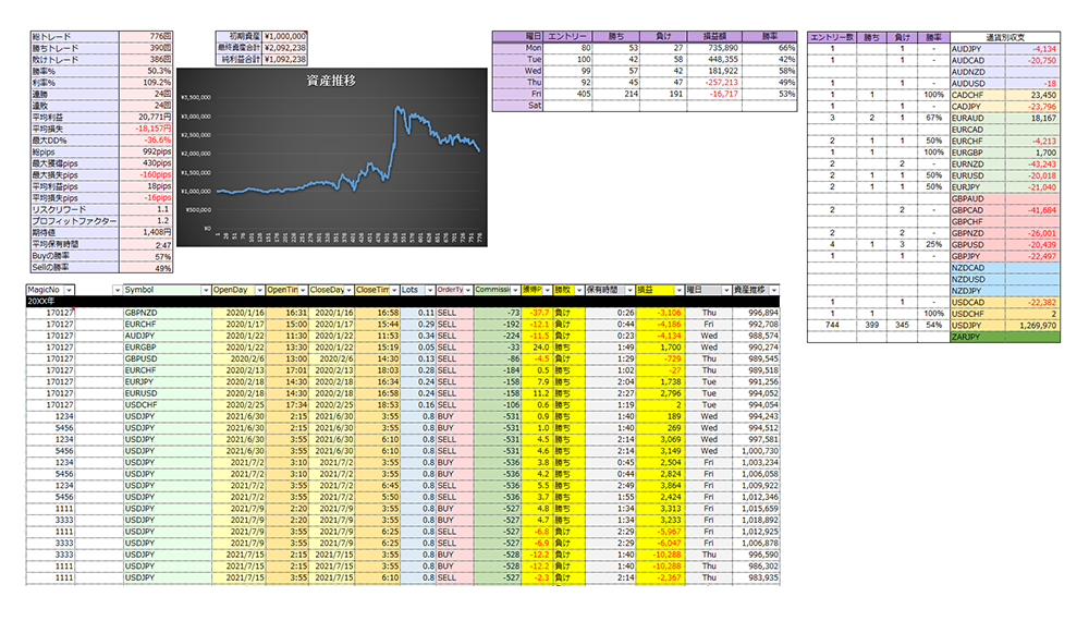・勝敗・通貨・時間帯・曜日・トレードタイプを自動で分類