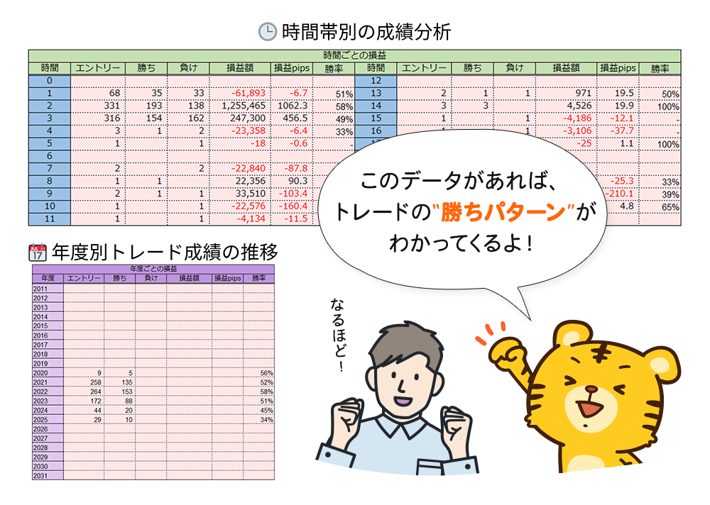トレードで成長したいなら、まずは“データで自分の勝ちパターン”を知ることが大切なんだ!