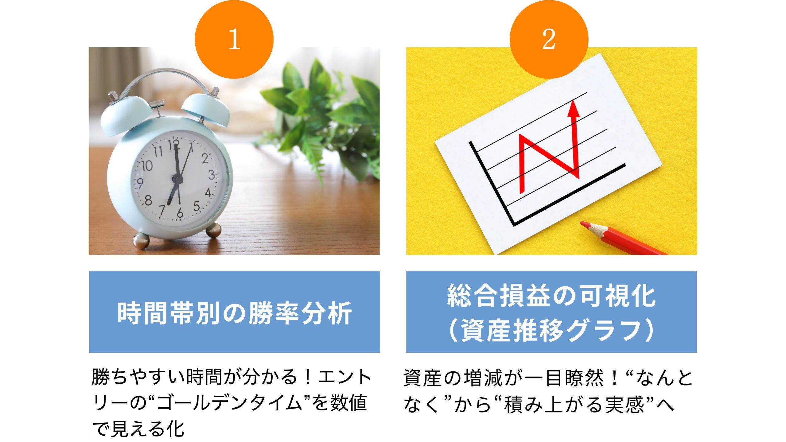 - エントリーやロジックの見直しにも役立つ分析ができる