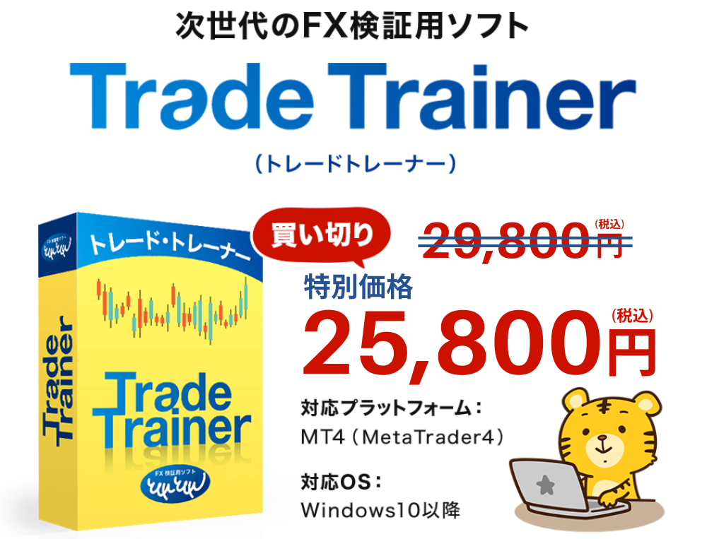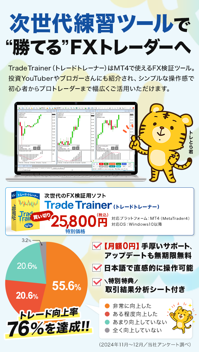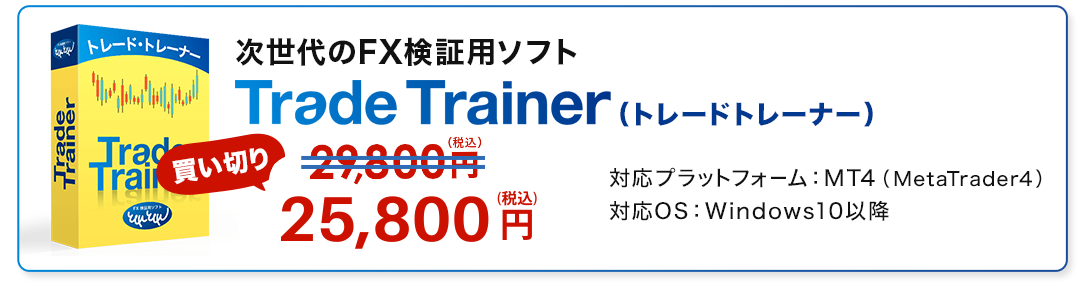 Trade Trainer(トレードトレーナー)は、FXを行うすべての方が損をしない投資を行えるようになるためのFX検証用ソフトです。